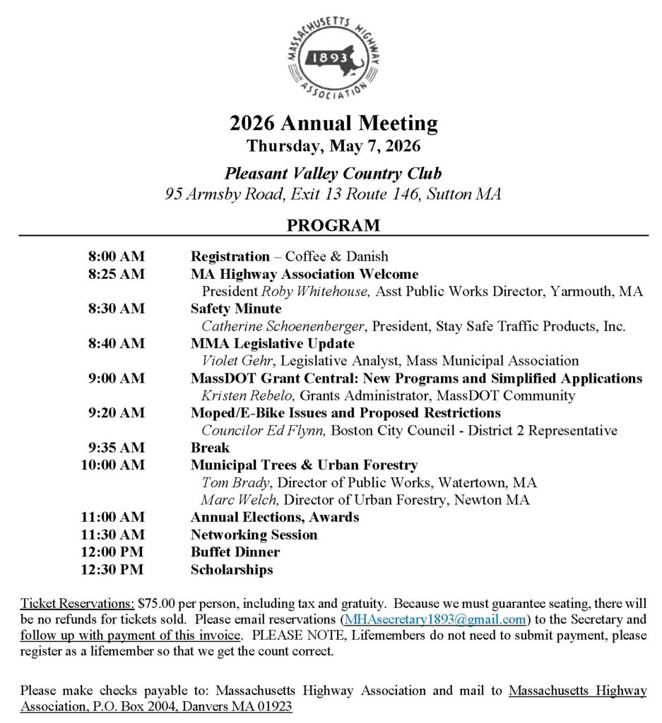 The Massachusetts Highway Calendar is a look back of historical equipment. The calendar also includes the 2026 meeting dates of the seven counties that MHA represents.